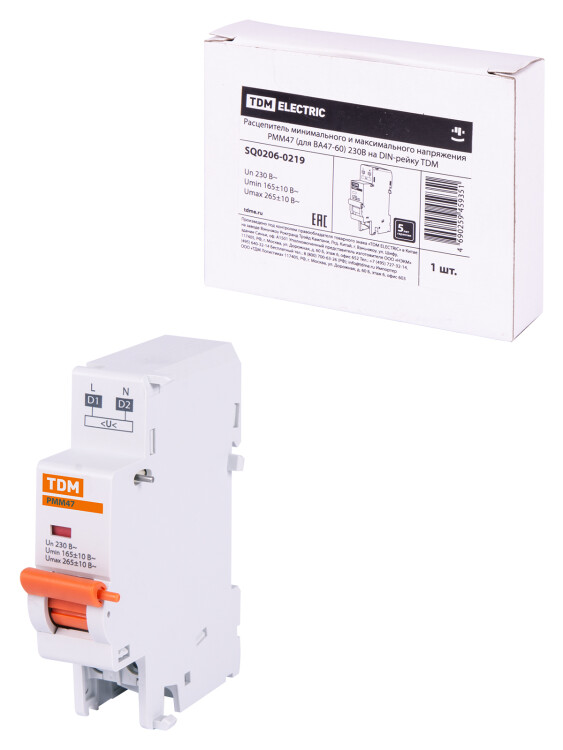 Расцепитель минимального и максимального напряжения РММ47 (для ВА47-60) 230В на DIN-рейку TDM (кр.1шт)