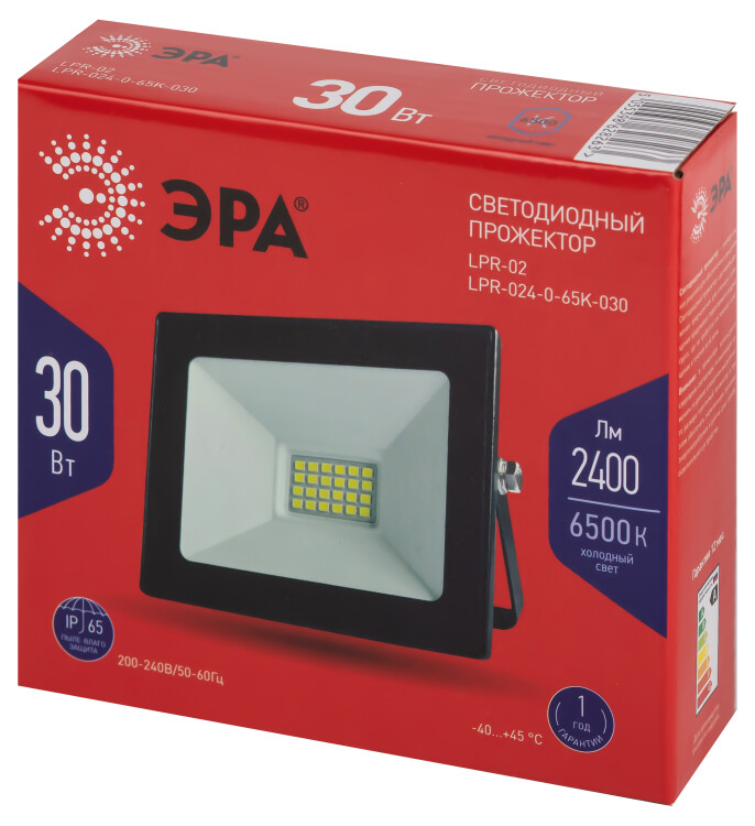Прожектор светодиодный уличный ЭРА RED LINE LPR-024-0-65K-030 30Вт 6500К 2400Лм IP65 (кр. 1шт)