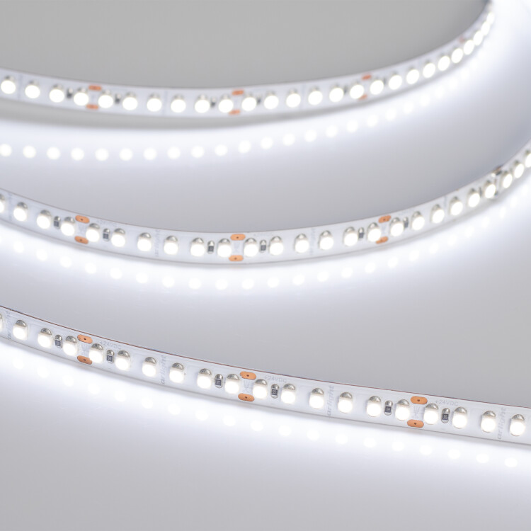 Гибкая лента, светодиоды smd 3528, 180шт/м (900шт на 5м), белая плата 8мм, скотч 3М. Цвет БЕЛЫЙ 5800-6500K. Питание 24V, мощность 14.4 Вт/м (72 Вт на 5м), угол 120°, высокая цветопередача CRI>90. Размеры 5000х8x2мм. Мин.отрезок 33.33мм, 6 шт светодиодов. Пакет 5м. Цена за 1м. Обязательная установка на профиль. Кратность заказа поставщику: 5 м.
