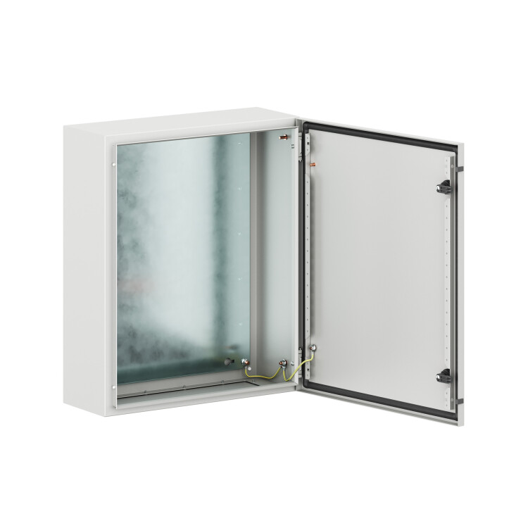 Навесные корпуса STE предназначены для систем автоматизации и распределения электроэнергии. Корпус, дверь, фланец STE изготавливаются из стали толщиной 1,5 мм с атмосферостойким порошковым покрытием, цвет RAL7035. Монтажная плата - из оцинкованной стали 1,8 мм. Корпуса выполнены по технологии сварки из единого листа металла, что обеспечивает высокую нагрузочную способность и защиту от вибраций. Степень защиты IP66, ударопрочность IK10, сейсмостойкость 9 баллов по шкале MSK-64, климатическое исполнение УХЛ1, ОМ2, ОМ3, группа горючести Г1. Комплект поставки: корпус, дверь реверсивная, монтажная плата, дверные рейки, поворотный замок 2 шт., сплошной фланец для ввода кабеля 1 шт., комплект заземления с проводами заземления. Габариты 600x500x200 (ШхВхГ) мм.