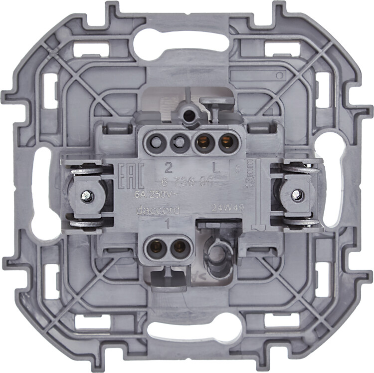 Выключатель кнопочный одноклавишный скрытого монтажа Legrand/Daccord Inspiria, цвет "Белый", номинальный ток 6А, напряжение ~250В, безвинтовые зажимы.