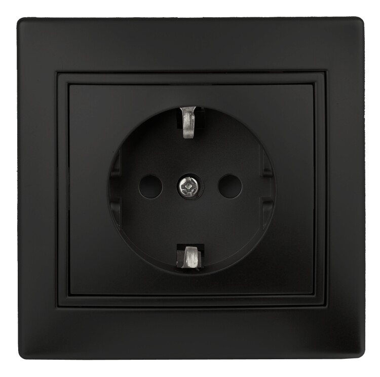Розетка Intro Plano 1-202-05 с заземлением 2P+E Schuko, 16А-250В, IP20, СУ, антрацит (кр. 1шт)