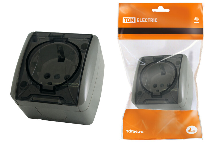 Розетка 2П+3 открытой установки IP54 16А с прозрачной крышкой серая "Селигер" TDM (кр.10шт)