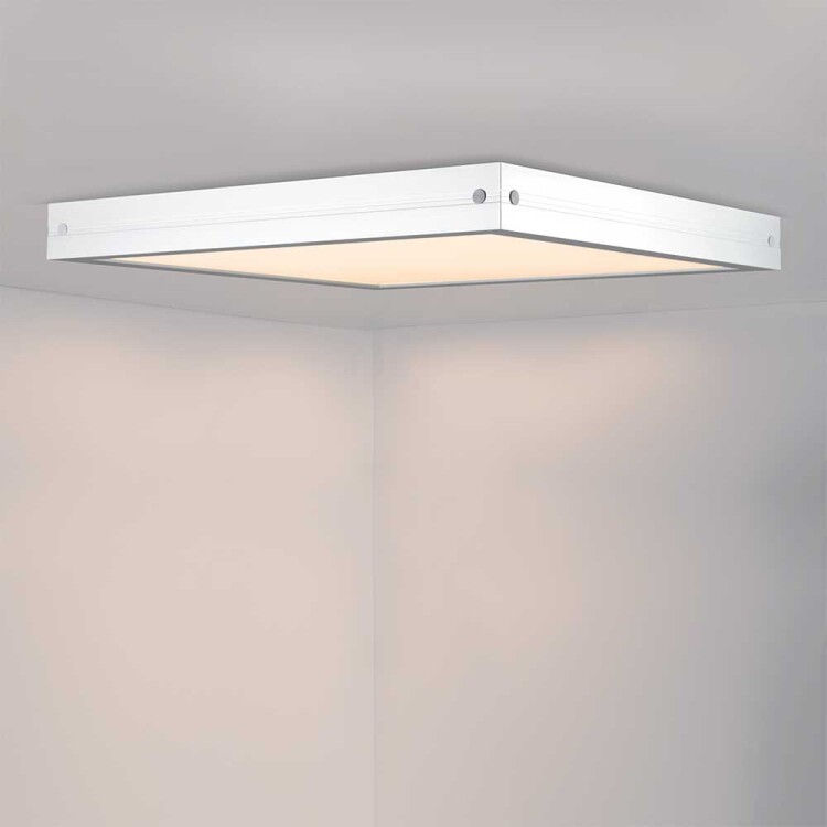 Светодиодная панель с торцевой заcветкой. Мощность 40 Вт, св. поток 3600 лм, 90 лм/Вт, белый 6000 K, CRI>80, угол 110°, напряжение питания 230 В. Белый квадратный корпус из алюминия, экран PS, LGP PMMA, степень защиты IP40. Размер (Д×Ш×В) 595×595×9 мм. Монтаж с креплением. Драйвер 39 В, 950 мА, пульсация