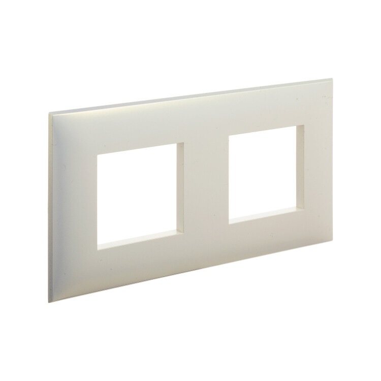 Рамки ДК С, разработанные студией Артемия Лебедева, предназначены для декоративного оформления электроустановочных изделий. Цвет рамки: "Белый жемчуг" - нежный оттенок, переливающийся, словно натуральный жемчуг. Его мягкость, совершенство и сдержанная красота притягивают внимание и свидетельствует о тонком вкусе владельца. В рамке предусмотрено 2 поста под ЭУИ (4 модуля). Рамка может быть размещена как горизонтально, так и вертикально. Габаритные размеры: 160х90 мм. Материал – термопласт.