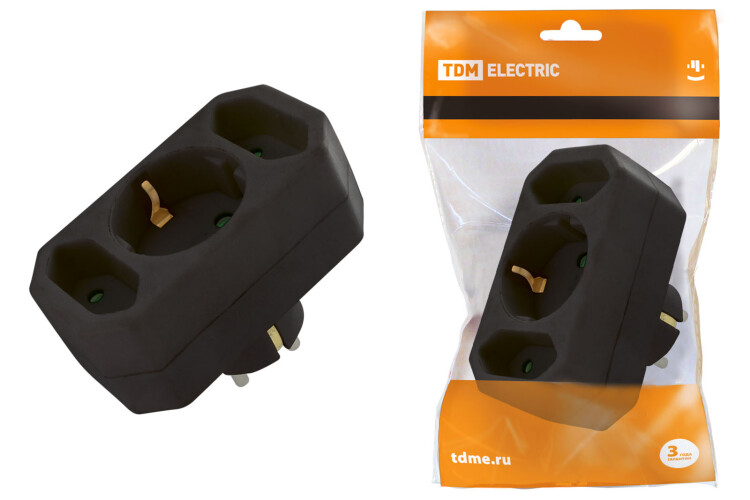 Блок на 3 гнезда: 1x2П+3 16 А + 2х2П 2,5 А под плоскую вилку 250 B черный TDM (кр.1шт)