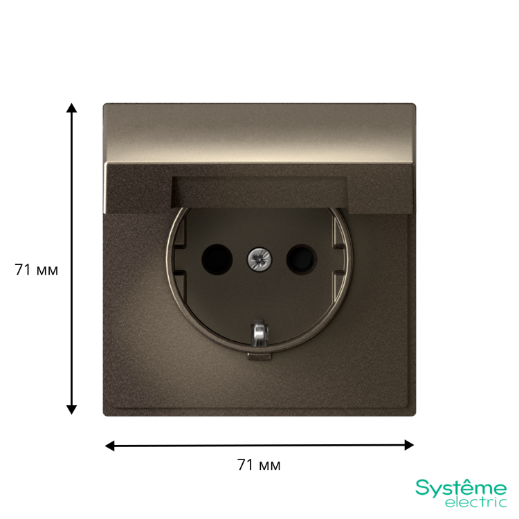 Механизм с быстрозажимными клеммами Systeme Electric серии ArtGallery в цвете мокко розетки одинарной с заземлением, шторками и крышкой подходит для сетей 250 В, на ток 16 А.