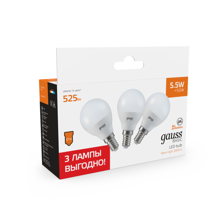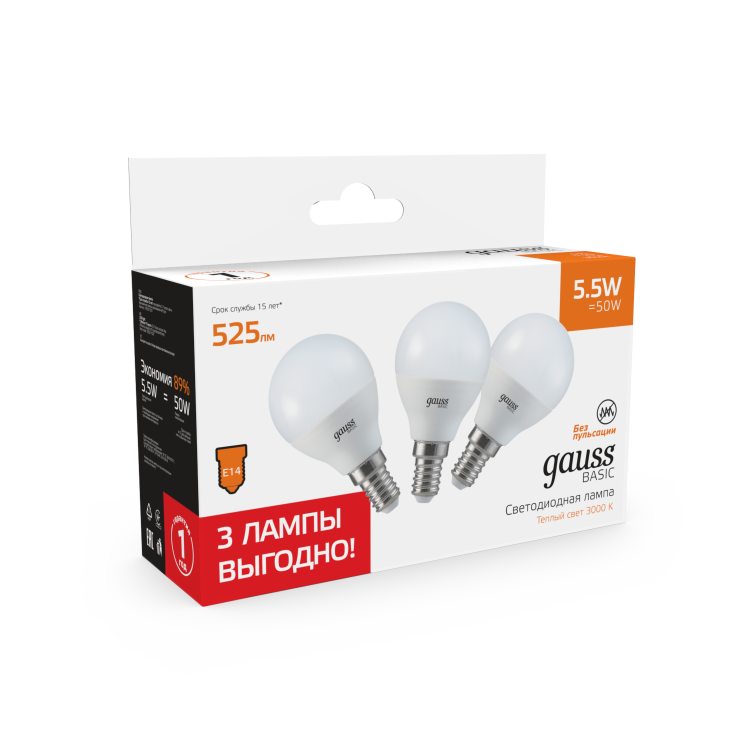 С яркостью 525 лм и потребляемой мощностью всего 5,5 Вт, она обеспечивает яркое освещение, при этом заметно экономя энергию. Температура 3000K создает уютную и приятную атмосферу, достаточно мягкую для глаз и идеально подходящую для дневного освещения.