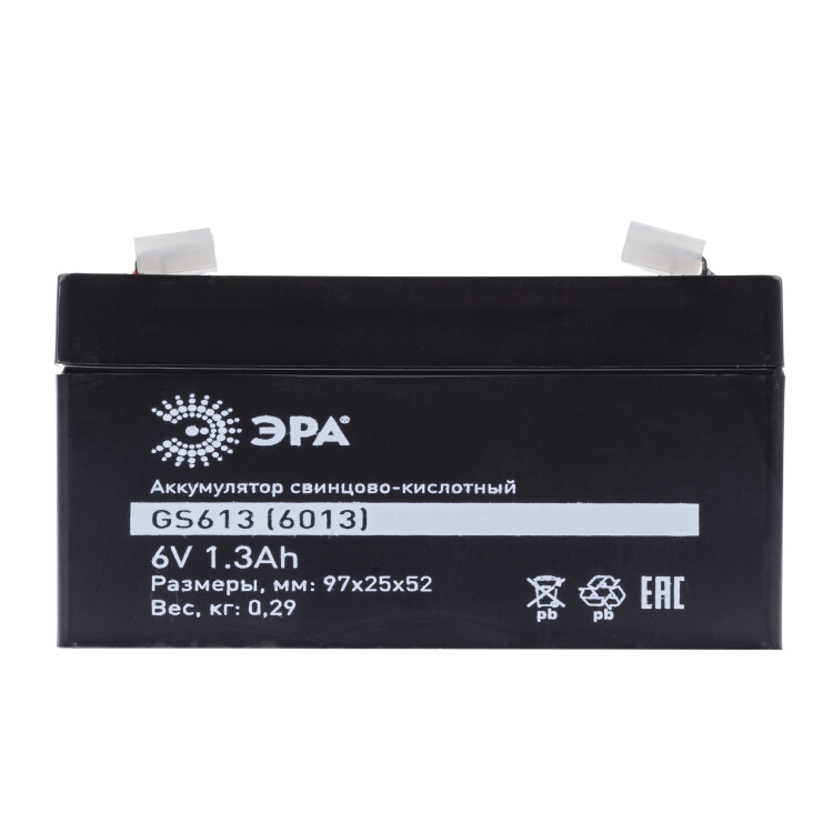 ЭРА Аккумулятор GS613 (Cвинцово-кислотный 6V 1,3) (40/1440) (кр. 1шт)