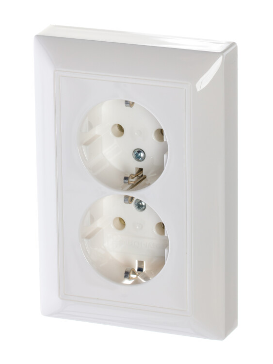 Механизм двойной розетки SCHUKO в комплекте c накладкой, не требует установки в рамку
