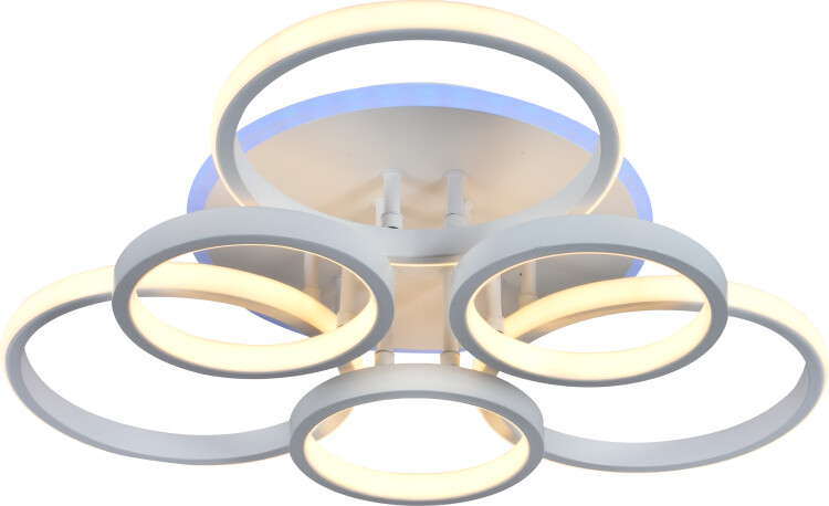 Ещё одно преимущество светодиодной люстры Paula встроенная RGB-подсветка, режимами которой также можно управлять. Разноцветное дополнительное свечение потолочного светодиодного светильника завораживает и придает пространству современное звучание.