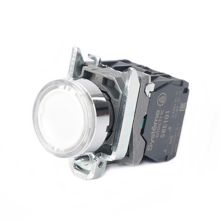 Кнопка сериии SB4 с подсветкой, в сборе, модульная, для монтажа в отверстия диаметром 22мм, белая, в металлическом корпусе. Напряжение питания: 24ВDC Количество контактов: 1НО+1НЗ. Устройства управления и сигнализации SystemeSig находят широкое применение в технологическом оборудовании и машинах, шкафах распределения и управления, промышленных предприятиях, объектах инфраструктуры, гражданском строительстве (ранее Schneider Electric Harmony Sig XB4BW31B5).