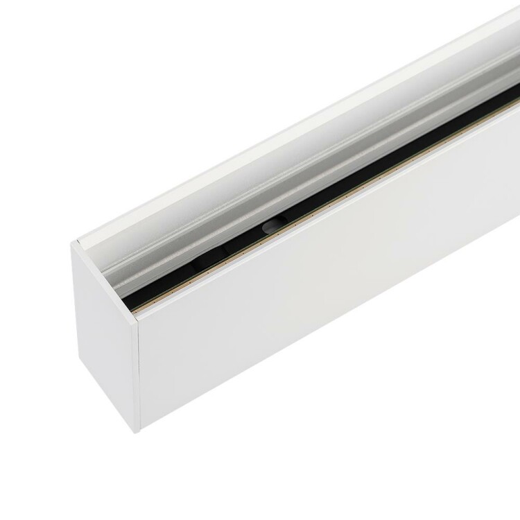 Подвесной или накладной магнитный трек с отсеком для блока питания, длина 1500мм. DC24V. Материал алюминий, цвет белый. Две заглушки в комплекте. Размер ДxШxВ: 1500x45x92мм. Размер (с учетом заглушек) ДxШxВ: 1506x45x92мм. Предельные габариты блока питания 42x25мм. Аксессуары для подвесного монтажа в комплект не входят.