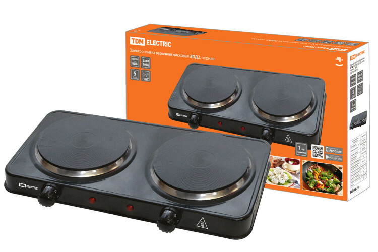 Электроплитка двухконф. ЭПД2 230 В, 2х1 кВт, диск, черная, TDM (кр.1шт)