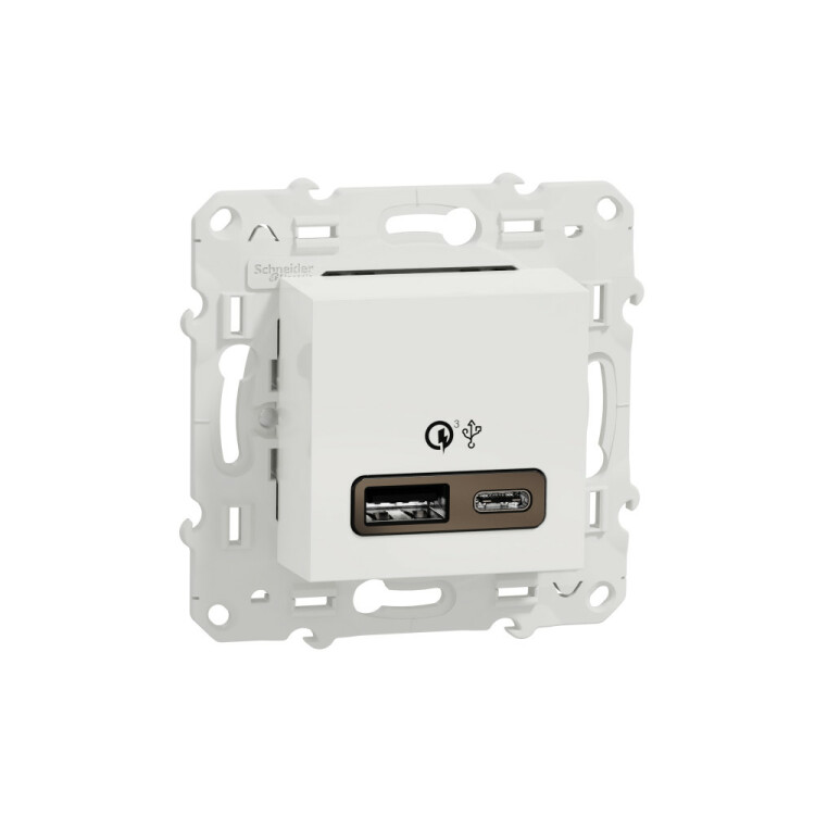 UNICA NEW РОЗЕТКА быстрая зарядка USB, 2-местная, тип А+С, 18 Вт, БЕЛЫЙ (кр.1шт) C3(+)