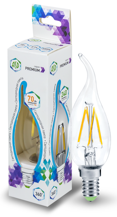 Колба в форме свечи на ветру. Лампа для открытых хрустальных люстр и светильников, где общий вид cветильника напрямую зависит от источника света.