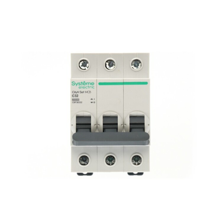 Автоматический выключатель серии City9 Set Systeme Electric, 3-полюсный, номинальный ток 32 А, характеристика С, Icn = 6 кА. Применя ется в электрических сетях напряжением 400 В. Предназначен для защиты от перегрузок и токов короткого замыкания. Оснащен механизмом «мгновенной коммутации». Ударопрочный корпус из специального пластика с 6 металлическими заклепками. Безопасные клеммы исключают попадание кабелей в заклеммное пространство.