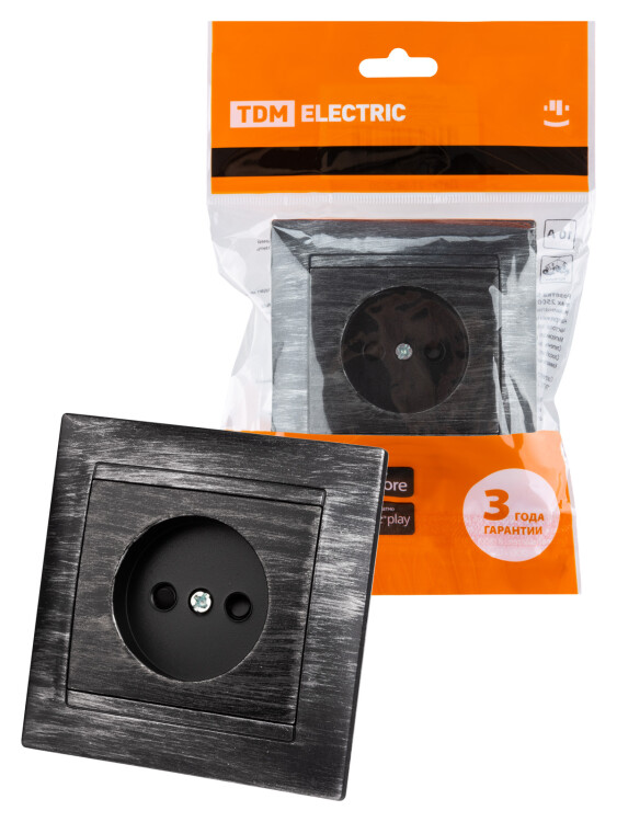 Розетка 2П 10А 250В с защ. шт. старинное серебро "Лама" TDM (кр.10шт)