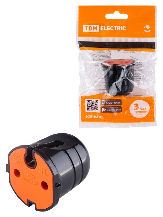 Кабельная розетка б/з черная с красной вставкой 10А 250B чернаяTDM (кр.48шт)