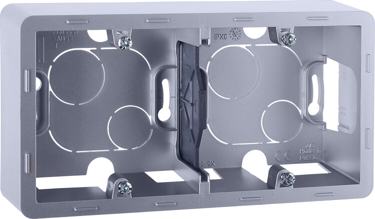 Коробка для накладного монтажа Legrand/Daccord Inspiria, 2 поста, цвет "Алюминий".