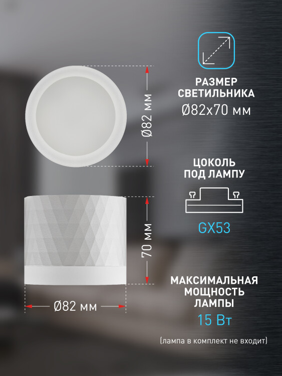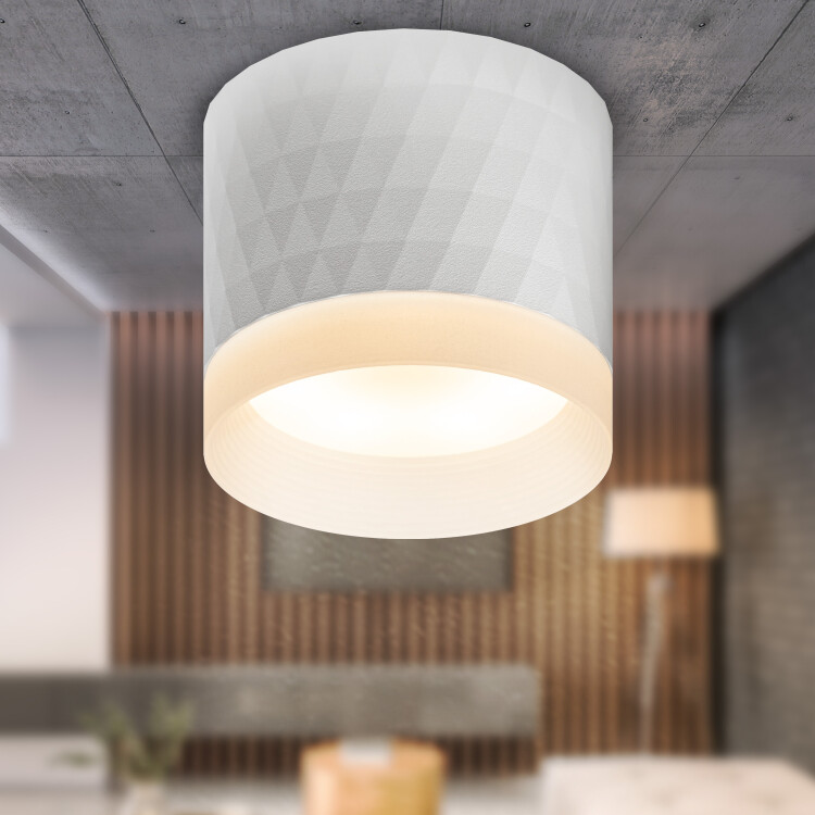 Накладной светильник OL37 WH является практичн ым и одновременно стильным. Корпус выполнен из алюминия, рисунок нанесен станком ЧПУ и покрыт устойчивой порошковой краской. Монтаж светильника очень простой. Нет необходимости делать врезное отверстие, чтобы закрепить его. Благодаря простому креплению, светильник можно установить как на стенах, так и на потолке, лестницах и дугих повернхностях помещеня. Цоколь для источника света GX53, напряжение питания ~230В 50/60Гц, материал алюминий, пластик, железо, цвет светильника белый, размер D82*H70мм, максимальная мощность лампы 15Вт, степень защиты IP20