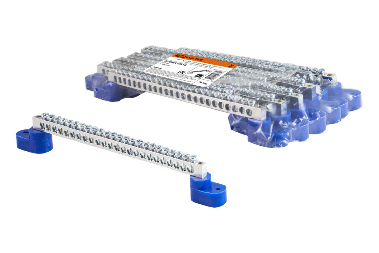 Применение:Комплектация НКУ различного исполнения.Сфера ЖКХ. Материалы:Контактная группа шин изготовлена из латуни (содержание меди не менее 57%) с никелевым покрытием.Прижимные винты изготовлены из никелированной стали.Изоляторы изготовлены из пластика, не поддерживающего горение.Преимущества:Позволяют производить коммутацию, как медных, так и алюминиевых проводников.Возможность приобретения дополнительных изоляторов (угловые и на DIN-рейку) разного цвета (желтые, зеленые, синие) для соответствия правилам ПУЭ. Назначение:Для присоединения нулевых рабочих (N) и нулевых защитных проводов (РЕ) в щитовом оборудовании. 0: