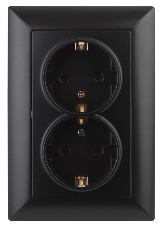 Розетка двойная 2-я серии Intro Solo скрытой установки цвет антрацит 4-205-05. Номинальные характеристики 16А 250В. Розетка выполнена из негорючего термопласта, укомплектована одноместной рамкой, оснащена винтовыми клеммами. Клеммы с двумя отверстиями позволяют соединять соседние розетки шлейфом. Установка в подрозетник производится как на монтажные лапки, так и на винты.
