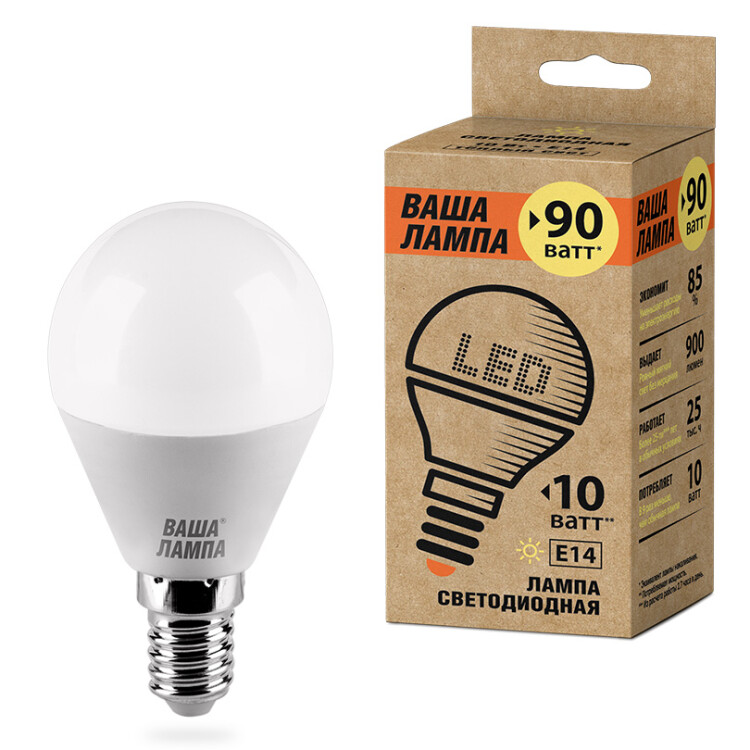 Лампа LED ВАША ЛАМПА G45 10Вт 900лм Е14 3000К 1/50 (кр.50шт)