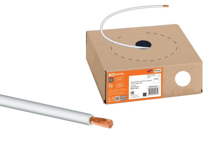 Провод ПуГВ 1х2,5 ГОСТ в коробке (100м), белый TDM (кр.100м)