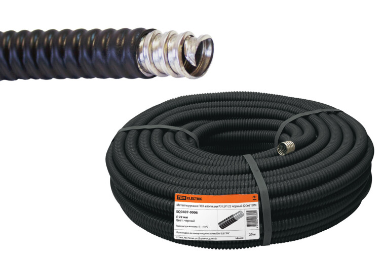 Металлорукав в ПВХ-изоляции РЗ-Ц-П 22 черный (20м) TDM (кр.20м)