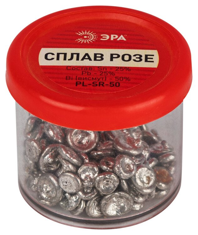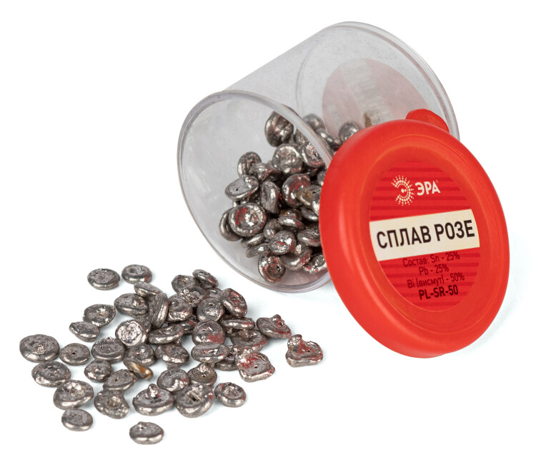 Сплав Розе — это легкоплавкий материал, температура плавления которого около +94 °C. Состав: олово, свинец и висмут. Применяется для выпаивания деталей, разъемов, шлейфов SMD микросхем и демонтажа защитных металлических экранов с плат мобильных телефонов