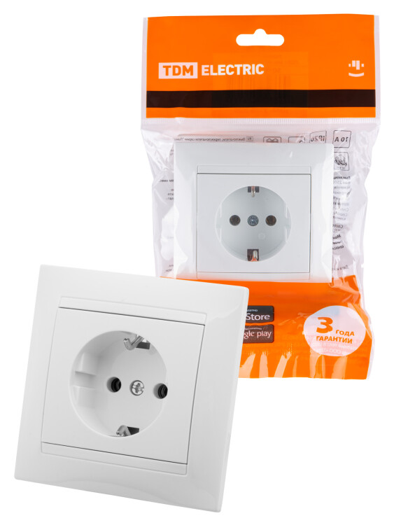 Розетка 2П+З 16А 250В белая "Лама" TDM (кр.10шт)