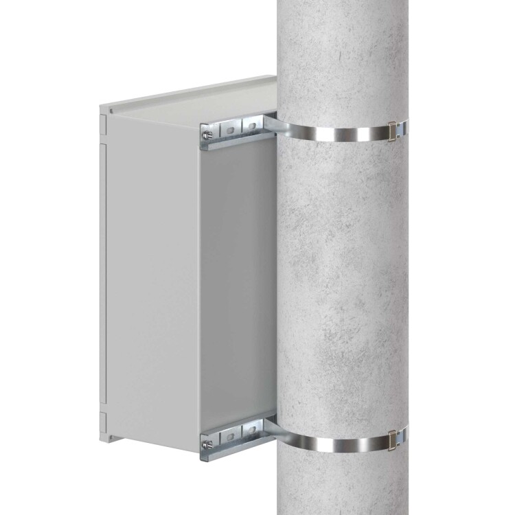 Комплект для крепления корпусов из фибергласа (GRP) шириной 250 мм на опору. Крепежные профили изготавливаются из оцинкованной стали толщиной 2 мм, стяжные хомуты – из нержавеющей стали AISI 304. Подходят для круглых опор диаметром от 40 до 195 мм или прямоугольных опор со стороной от 60 до 165 мм. В комплект поставки входят: 2 профиля, 2 стяжных хомута, 2 замка для фиксации хомутов.