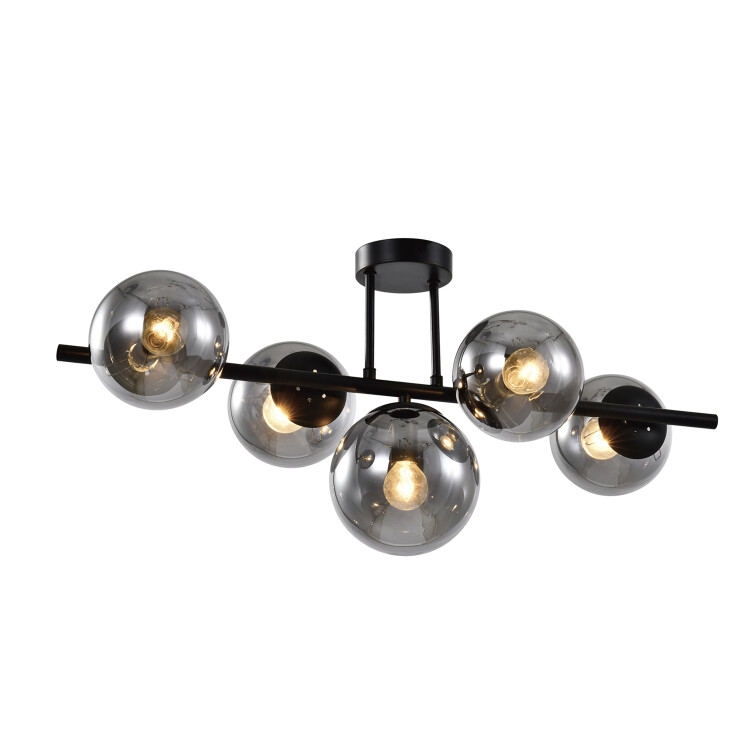 Современная люстра Rivoli Lovisa (арт. 3051-305) имеет минималистичную прочную арматуру черного цвета. Круглые плафоны люстры с дымчатым тонированием смотрятся очень эффектно и в то же время аккуратно. Пять плафонов - оптимальное количество для стандартной жилой комнаты. Рекомендуем использовать лампы Е14 мощностью 40 Вт. Для экономии электроэнергии можно купить энергоэффективные светодиодные лампы. Освещаемая площадь - 15 м². Для помещений поменьше есть аналогичная модель с 3 плафонами (арт. 3051-303).