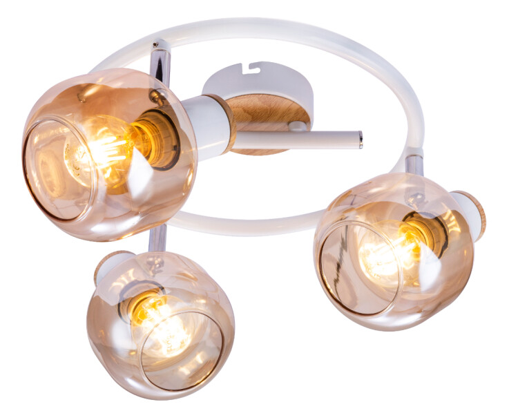 Светлое дерево греет взгляд и создаёт уютный нежный тандем с аккуратным металлическим каркасом белого цвета. Придаёт изюминку этой идиллии лёгкое перламутровое покрытие плафонов. Эта серия с лёгким ретро-настроением в современных интерьерах смотрится особенно стильно. Серия представлена настенно-потолочным светильником на 3 лампы.
