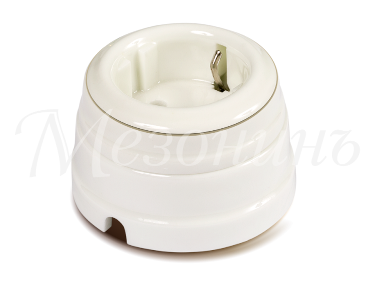 Декоративная двухполюсная ретро розетка фарфоровая с заземляющим контактом и подъемной рамкой. Внутренний монтаж розетки возможен при использовании переходного суппорта. Материал: Фарфор ; Цвет: Белый + окантовка из драгоценного металла - платина ; Размер: D70х45мм ; Характеристики: 16А,250В~, IP 20
