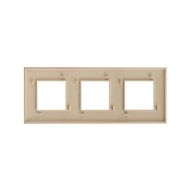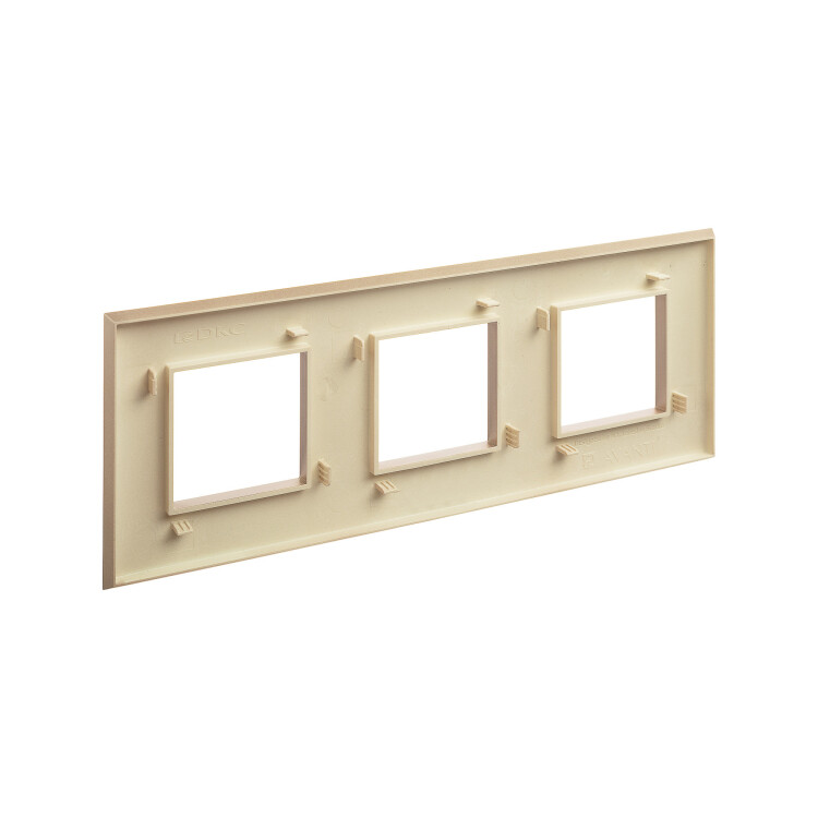 Рамки ДК С, разработанные студией Артемия Лебедева, предназначены для декоративного оформления электроустановочных изделий. Цвет рамки: "Кремовый жемчуг" - нежный оттенок, переливающийся, словно натуральный жемчуг. Его мягкость, совершенство и сдержанная красота притягивают внимание и свидетельствует о тонком вкусе владельца. В рамке предусмотрено 3 поста под ЭУИ (6 модулей). Рамка может быть размещена как горизонтально, так и вертикально. Габаритные размеры: 230х90 мм. Материал – термопласт.