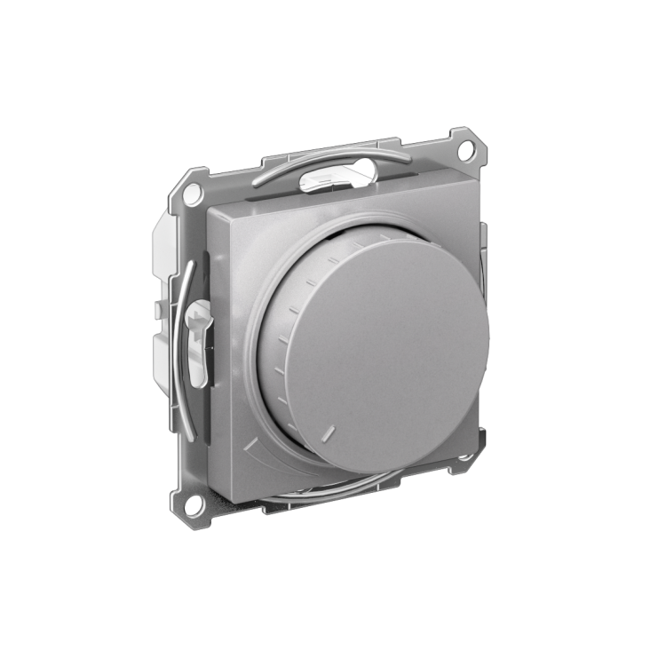 Механизм светорегулятора Systeme Electric (ранее Schneider Electric) серии AtlasDesign в цвете алюминий поворотно-нажимной для нагрузки мощностью до 400 Вт, подходит для LED ламп. Светорегулятор позволяет установить в помещении комфортный уровень освещения. При подключении второго переключателя диммер может использоваться как проходной переключатель. Может использоваться как выключатель или переключатель. Выполнен из материала, стойкого к УФ-излучению и появлению царапин. (ранее Schneider Electric ЭУИ ATLASDESIGN, ЭУИ UNICA NEW, ЭУИ ODACE ATN000334, ATN000336, NU551430, S53R512)