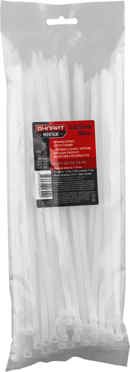 Хомуты ОНЛАЙТ 90 302 OCT-048-250-100-WH (100 шт/упак)(кр.1упак)