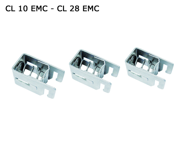 Обеспечивает контакт ЭМС посредством прижима экранов кабелей к кабельной рейке с контактом ЭМС.Диаметр экрана кабеля 10-20 мм.