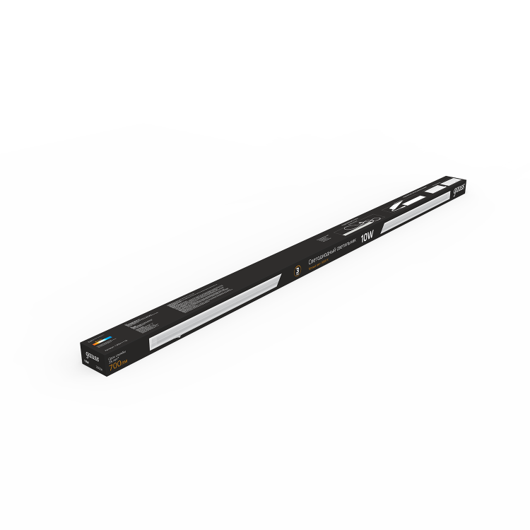 Светильник Gauss TL линейный 10W изготовлен из прочного и легкого алюминия окрашенного в белый цвет, материал рассеивателя - опаловый пластик. Светильник легко монтируется на любые поверхности, может выстраиваться в линию до 10 светильников, благодаря этому может использоваться как основное освещение, так и в разных вариантах подсветки витрин, столов, верстаков, полочек, ниш и прочих мелких и крупных предметов, требующих освещения. Световой поток одного светильника 700лм теплого белого света 3000K. Пылезащита IP20 (для сухих помещений).