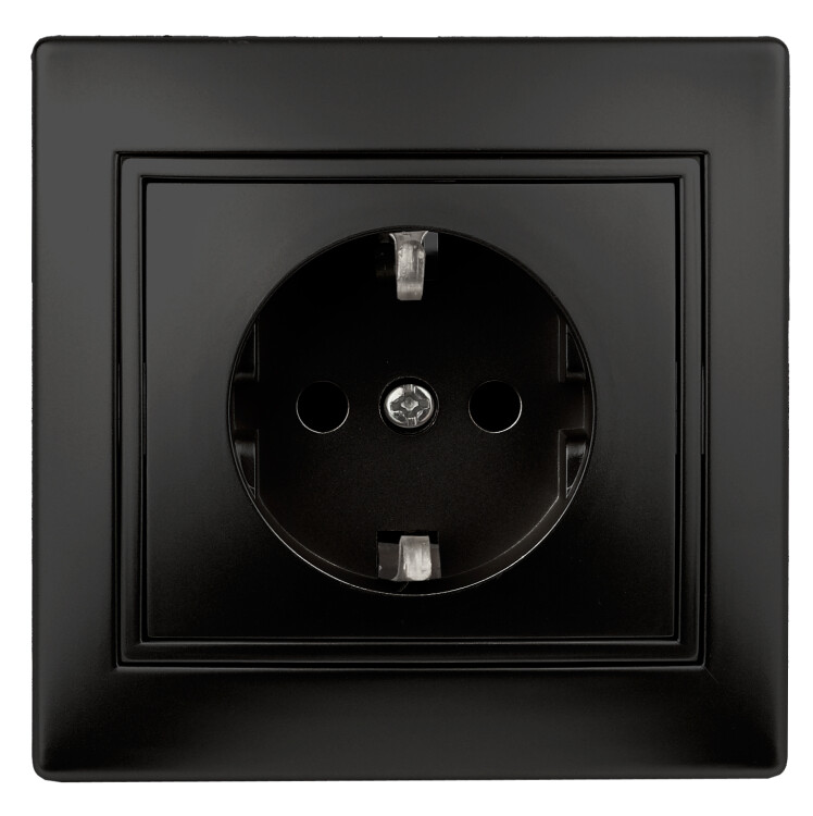 Розетка со шторками серии Intro Plano скрытой установки цвет антрацит 1-206-05. Номинальные характеристики 16А 250В. Розетка выполнена из керамики, укомплектована одноместной рамкой, оснащена винтовыми клеммами. Клеммы с двумя отверстиями позволяют соединять соседние розетки шлейфом. Установка в подрозетник производится как на монтажные лапки, так и на винты. Для установки 2-х и более устро йств в несколько подрозетников в ряд дополнительно используются многоместные рамки: 2-х постовая - 1-502-хх, 3-х постовая 1-503-хх, 4-х постовая - 1-504-хх (где хх - цветовой код: 01 - белый, 02 - слоновая кость, 03 - алюминий, 04 - шампань, 05 - антрацит, 10 - венге, 11 - сосна).