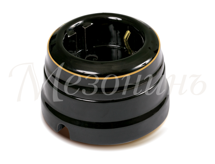 Декоративная двухполюсная ретро розетка фарфоровая с заземляющим контактом и подъемной рамкой. Внутренний монтаж розетки возможен при использовании переходного суппорта. Материал: Фарфор ; Цвет: Черный+окантовка из драгоценного металла - золото ; Размер: D70х45мм ; Характеристики: 16А,250В, IP 20