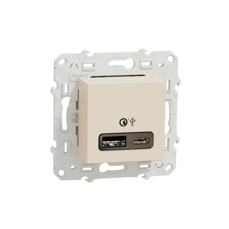 UNICA NEW РОЗЕТКА быстрая зарядка USB, 2-местная, тип А+С, 18 Вт, БЕЖЕВЫЙ (кр.1шт) C3(+)