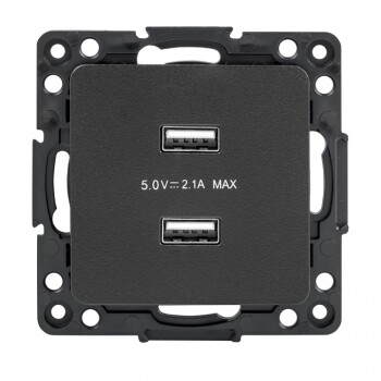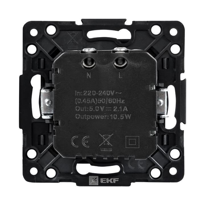 Стокгольм Механизм Розетки USB 2-местной 2,1А винтовые клеммы черный EKF PROxima (кр. 1шт)