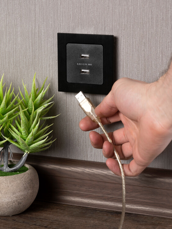 Розетка с 2 USB EKF серии Стокгольм станет отличным решением для квартиры и загородного дома для подключения устройств. USB-разъемы позволяют подлючить мобильные устройства напрямую, без адаптера. Изделие необходимо дополнить рамкой.