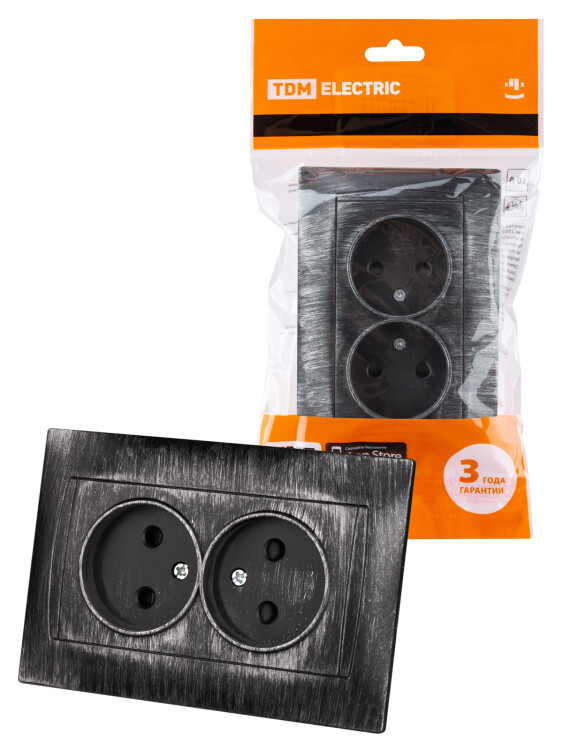 Розетка двойная 2П 10А 250В с защ. шт. старинное серебро "Лама" TDM (кр.7шт)