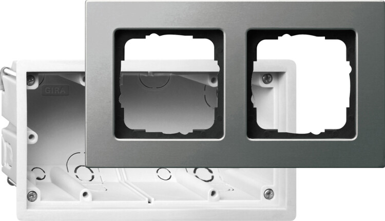 Монтажный набор + рамка 2-местная Gira E22 сталь