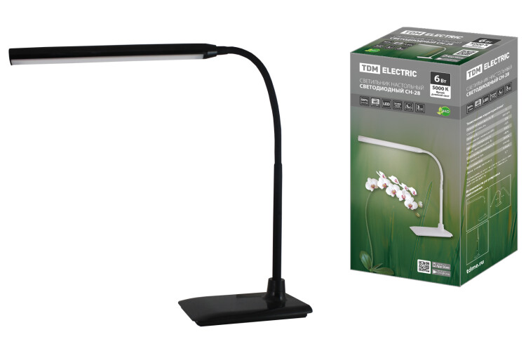 Светильник светодиодный настольный СН-28, 6 Вт, сенсор-диммер, 5000 К, 220 В, черный, TDM (кр.1шт)