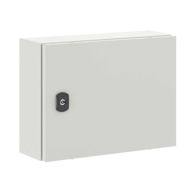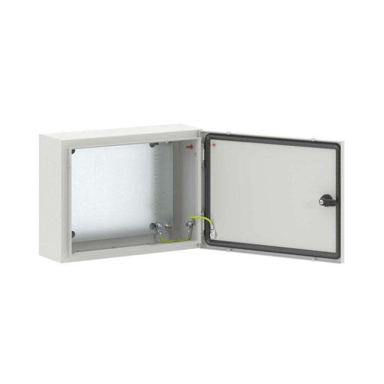 Навесные корпуса STE предназначены для систем автоматизации и распределения электроэнергии. Корпус, дверь, фланец STE изготавливаются из стали толщиной 1,5 мм с атмосферостойким порошковым покрытием, цвет RAL7035. Монтажная плата - из оцинкованной стали 1,8 мм. Корпуса выполнены по технологии сварки из единого листа металла, что обеспечивает высокую нагрузочную способность и защиту от вибраций. Степень защиты IP66, ударопрочность IK10, сейсмостойкость 9 баллов по шкале MSK-64, климатическое исполнение УХЛ1, ОМ2, ОМ3, группа горючести Г1. Комплект поставки: корпус, дверь реверсивная, монтажная плата, поворотный замок 1 шт., сплошной фланец для ввода кабеля 1 шт., комплект заземления с проводами заземления. Габариты 300x400x150 (ШхВхГ) мм.